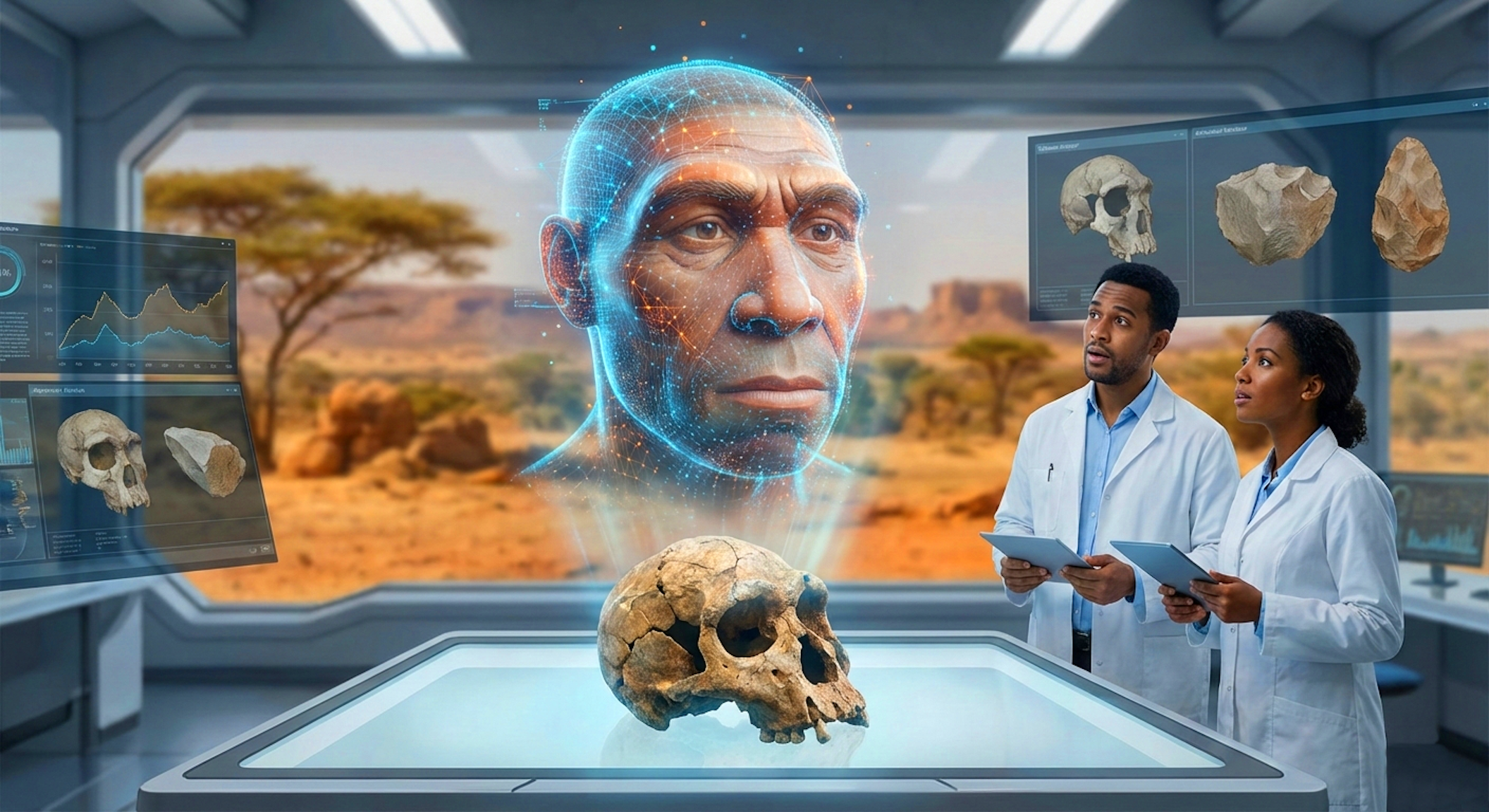 في إنجاز علمي غير مسبوق يدمج بين دقة الحفريات التقليدية وبراعة التكنولوجيا الرقمية الحديثة، نجح فريق دولي من العلماء في إعادة “الحياة” رقمياً إلى وجه أحد أقدم أسلاف البشر، وذلك عبر ترميم جمجمة تعرف بـ (DAN5) تعود لـ “الإنسان المنتصب” (Homo erectus). الاكتشاف الذي خرج من رحم منطقة “غونا” في مثلث العفر الإثيوبي، ونُشرت تفاصيله يوم الأربعاء 17 ديسمبر 2025، لم يقدم لنا مجرد صورة، بل أعاد رسم خارطة طريق الهجرات البشرية الأولى، طارحاً تساؤلات جريئة حول التنوع البيولوجي والقدرات التقنية لأسلافنا قبل 1.5 مليون سنة.