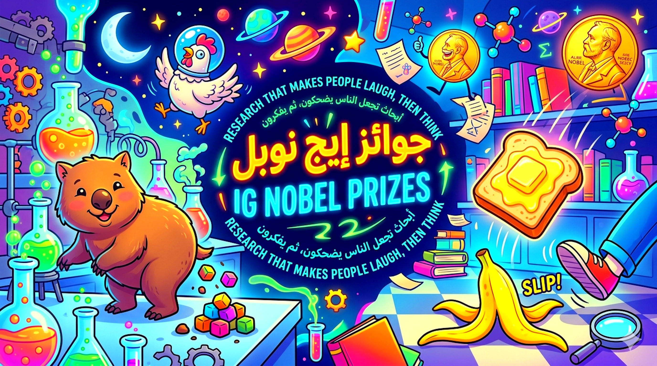 بين صرامة المختبرات وجدية المعادلات، تطل علينا “جوائز إيج نوبل” (Ig Nobel Prizes) – وهي الجوائز التي تُمنح للأبحاث التي “تجعل الناس يضحكون أولاً، ثم تجعلهم يفكرون ثانياً”.